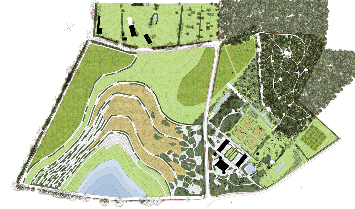 In the field adjacent to the château grounds the project of creating a large scale seasonally changing labyrinthine walk was started in 2005. The pastoral hedges, which form the backbone of the maze, are aligned with the contours in harmony with the natural lay of the land. The garden of discovery as we call it, is an experiment in agro ecology and is being developed following permaculture and sustainable development principals. The Padiès project is an attempt to reinstate the domain into its cultural and sustainable context.